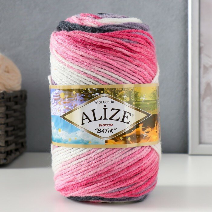10 цен на Пряжа Alize Burcum Batik белый-серый-розовый (1602), 100%акрил, 210м, 100г, 1шт