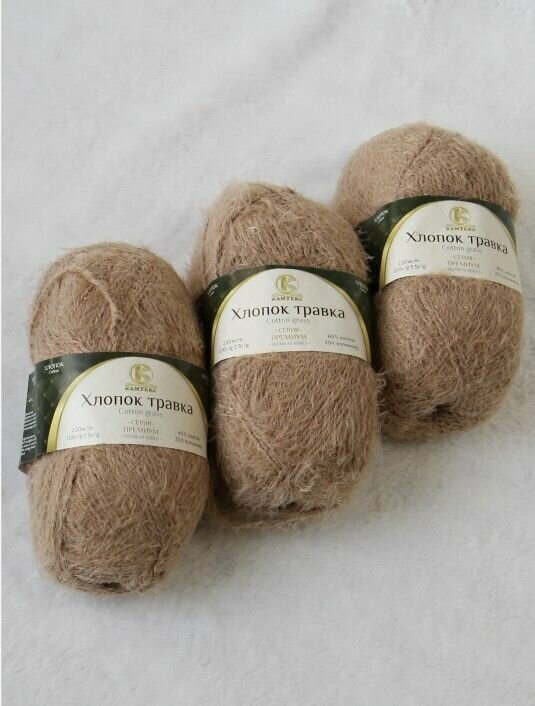 10 цен на Пряжа Хлопок травка от Камтекс, цвет Арахис 170, 3 шт*100 г/220 м