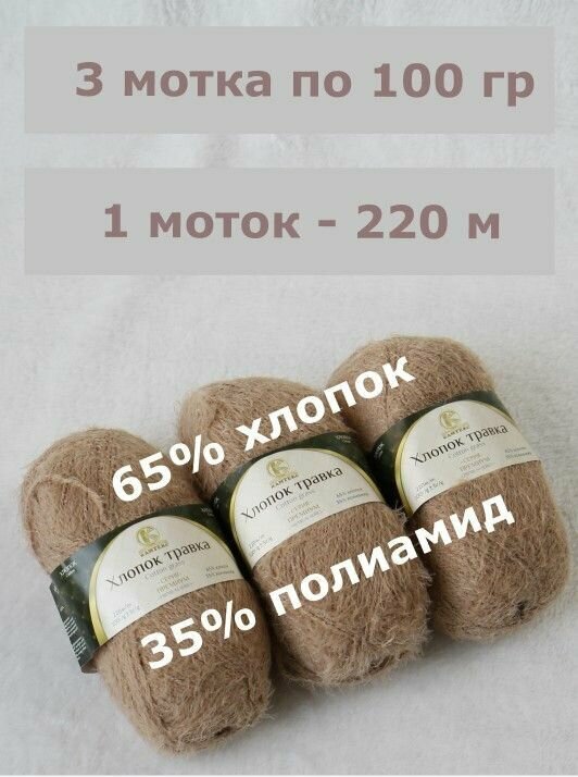 Пряжа Хлопок травка от Камтекс, цвет Капучино 101, 3 шт*100 г/220 м 900 ₽