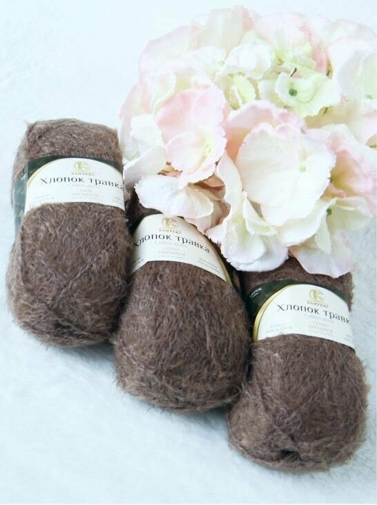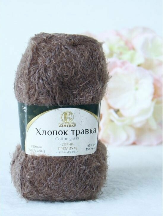 Пряжа Хлопок травка от Камтекс, цвет Шоколад 063, 3 шт*100 г/220 м 900 ₽