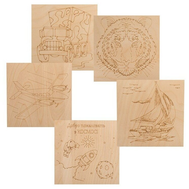 10 цен на Оригинальный набор досок для выжигания REXANT "Для мальчиков" 150х150 мм с разными рисунками (5 шт)
