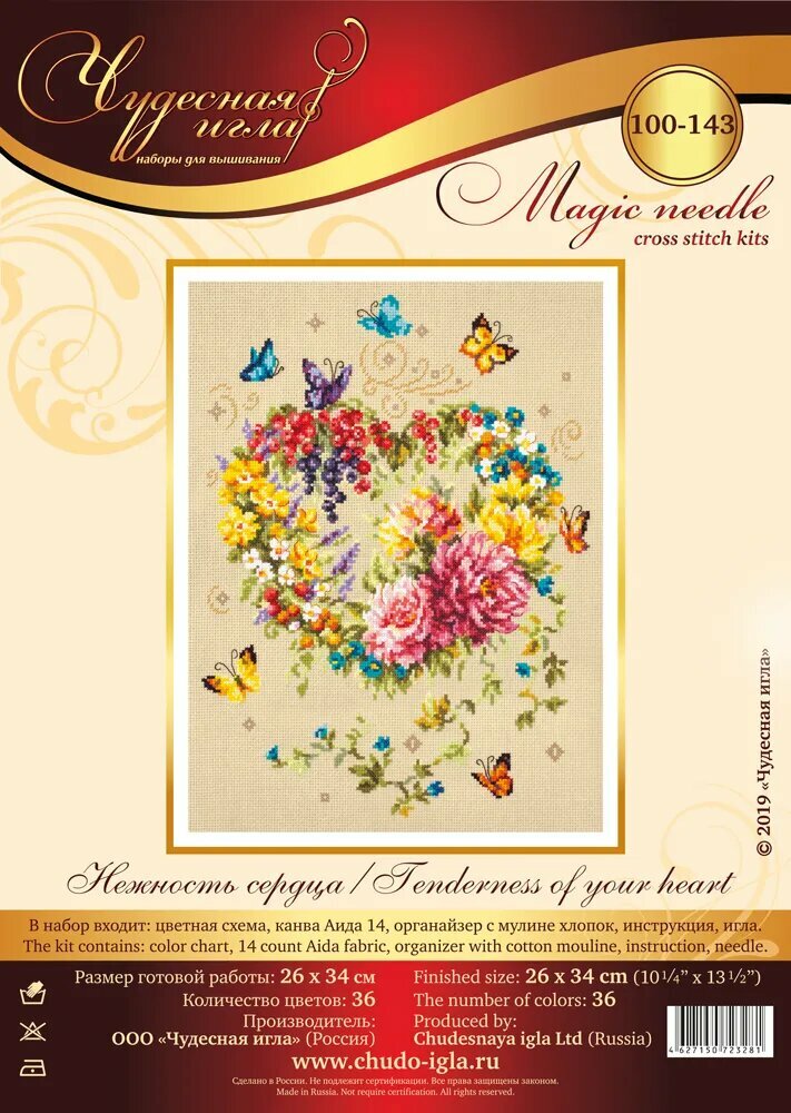 Набор для вышивания Чудесная Игла 100-143 "Нежность сердца" 26 x 34 см информация:
