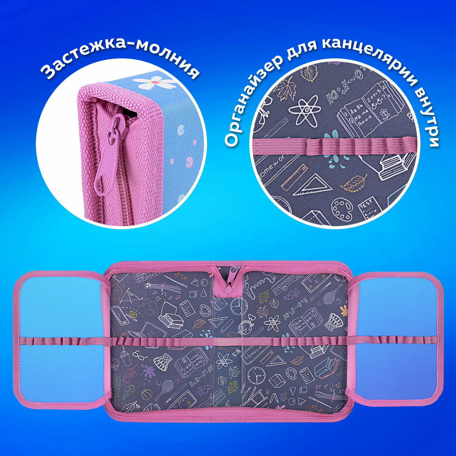 | Дополнительная информация | Пенал ПИФАГОР с 1 отделением и с 2 откидными планками. Удобная молния с трех сторон с металлическим бегунком, прочные резинки для предметов. |