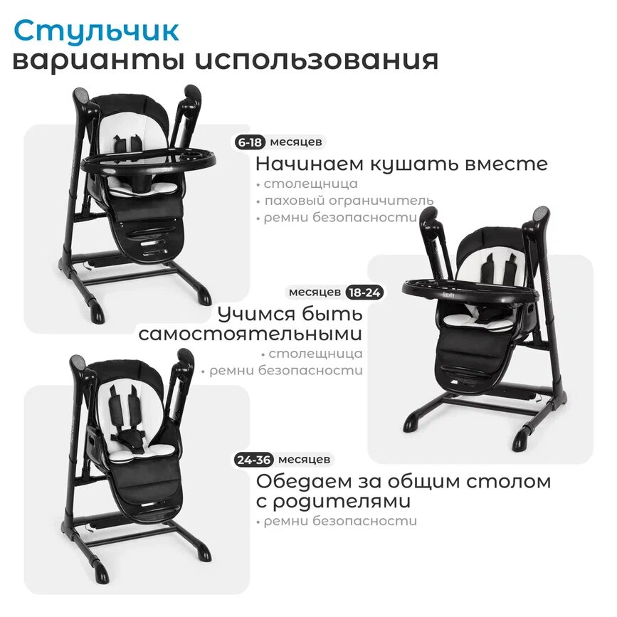 Стульчик для кормления детский с электронным устройством качения Nuovita Unico lux Nero (Nero, Nero/Черный, Черный) информация: