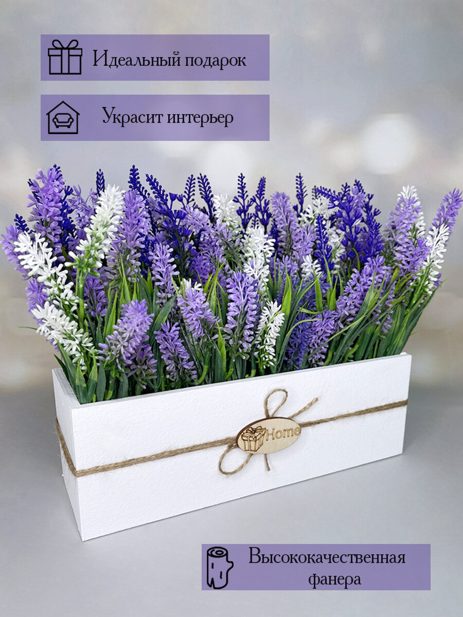 Искусственная лаванда в ящике для дома и офиса, ПоДар.Ок Home информация: