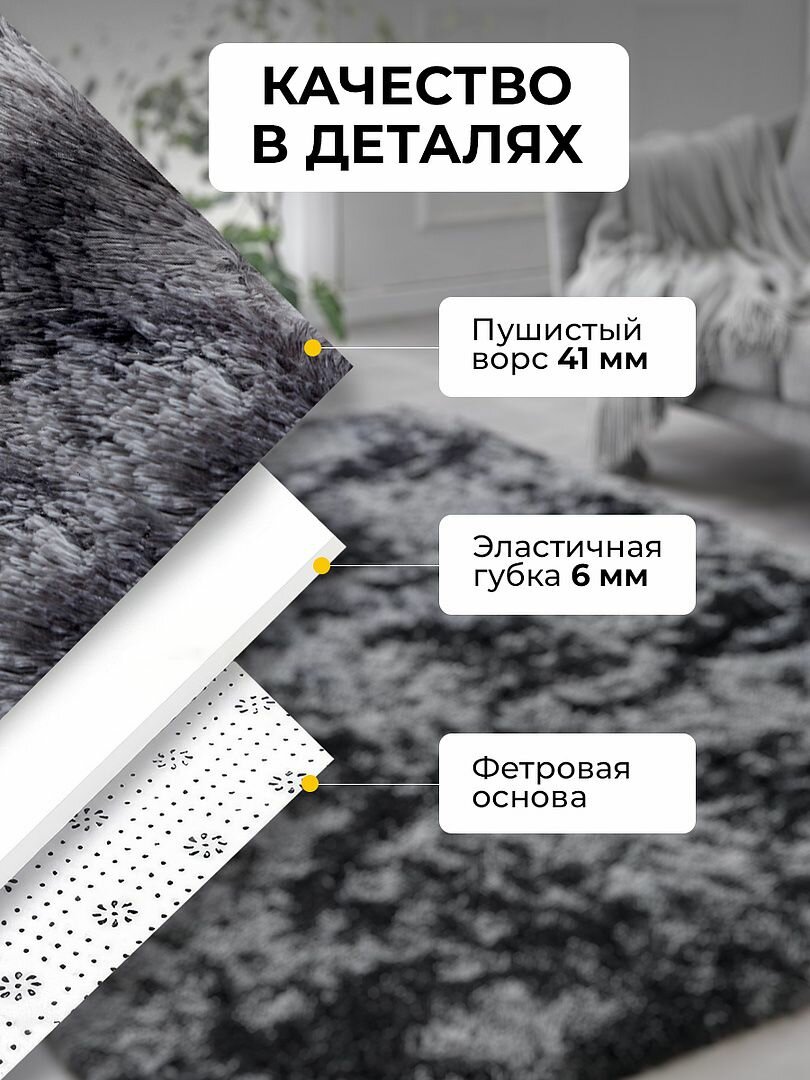 Ковер на пол с ворсом Classmark комнатный, пушистый, 120х160 см, материал изделия полиэстер, основа коврика ПВХ, мягкий и антискользящий, серый информация: