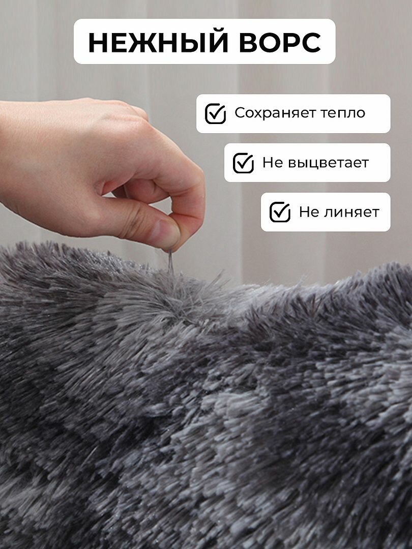 Ковер на пол для комнаты с ворсом 150х200 см, мягкий пушистый меховой в гостиную, спальню, зал и детскую антискользящий, серый 3 324 ₽
