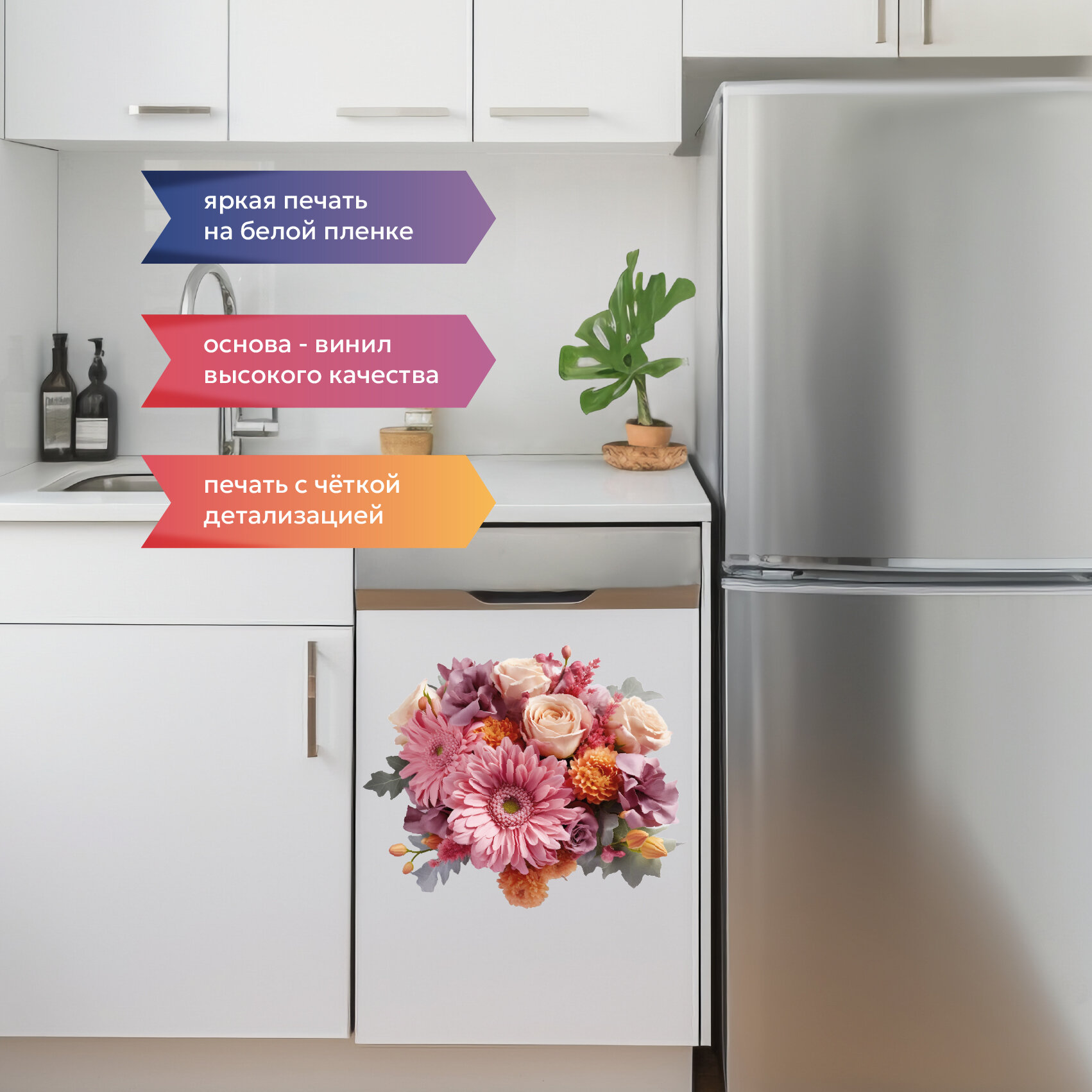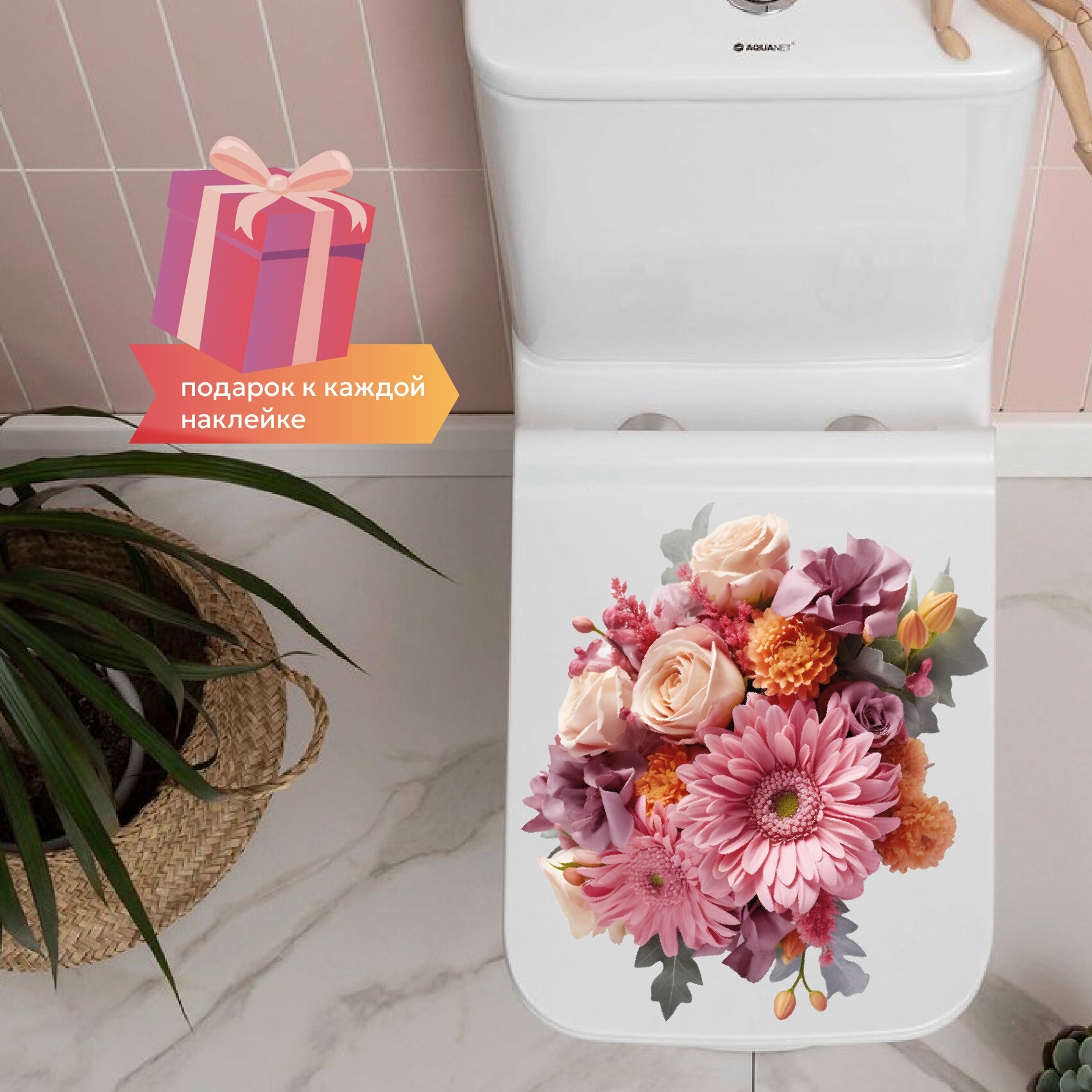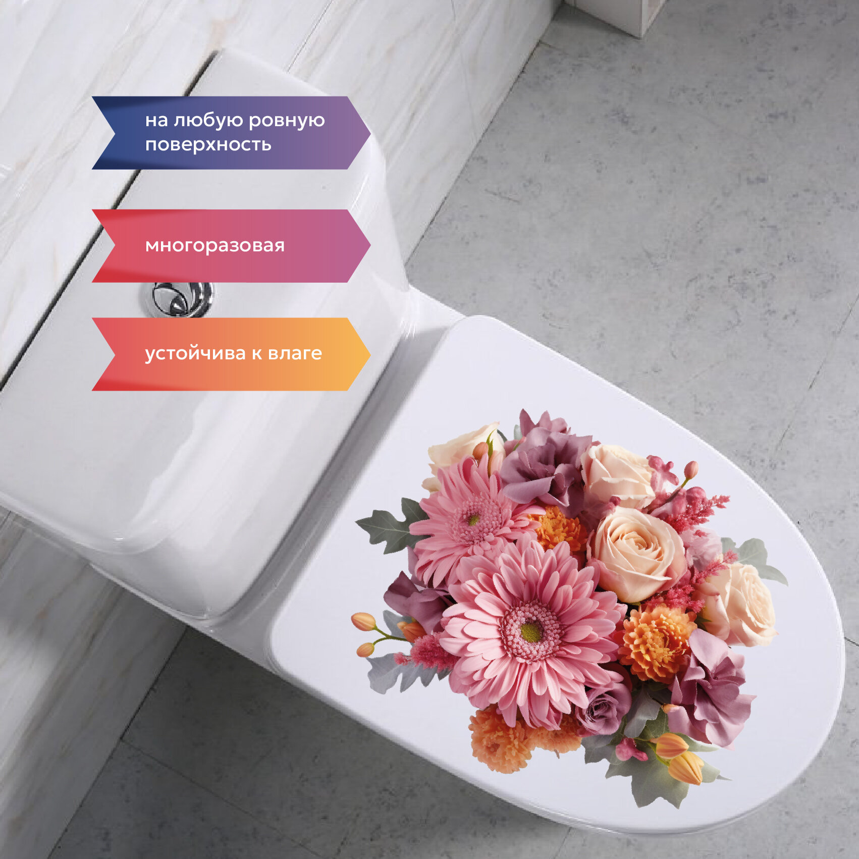 Интерьерная красивая наклейка на унитаз, на холодильник, на шкафчик, на дверь , на зеркало букет цветов информация: