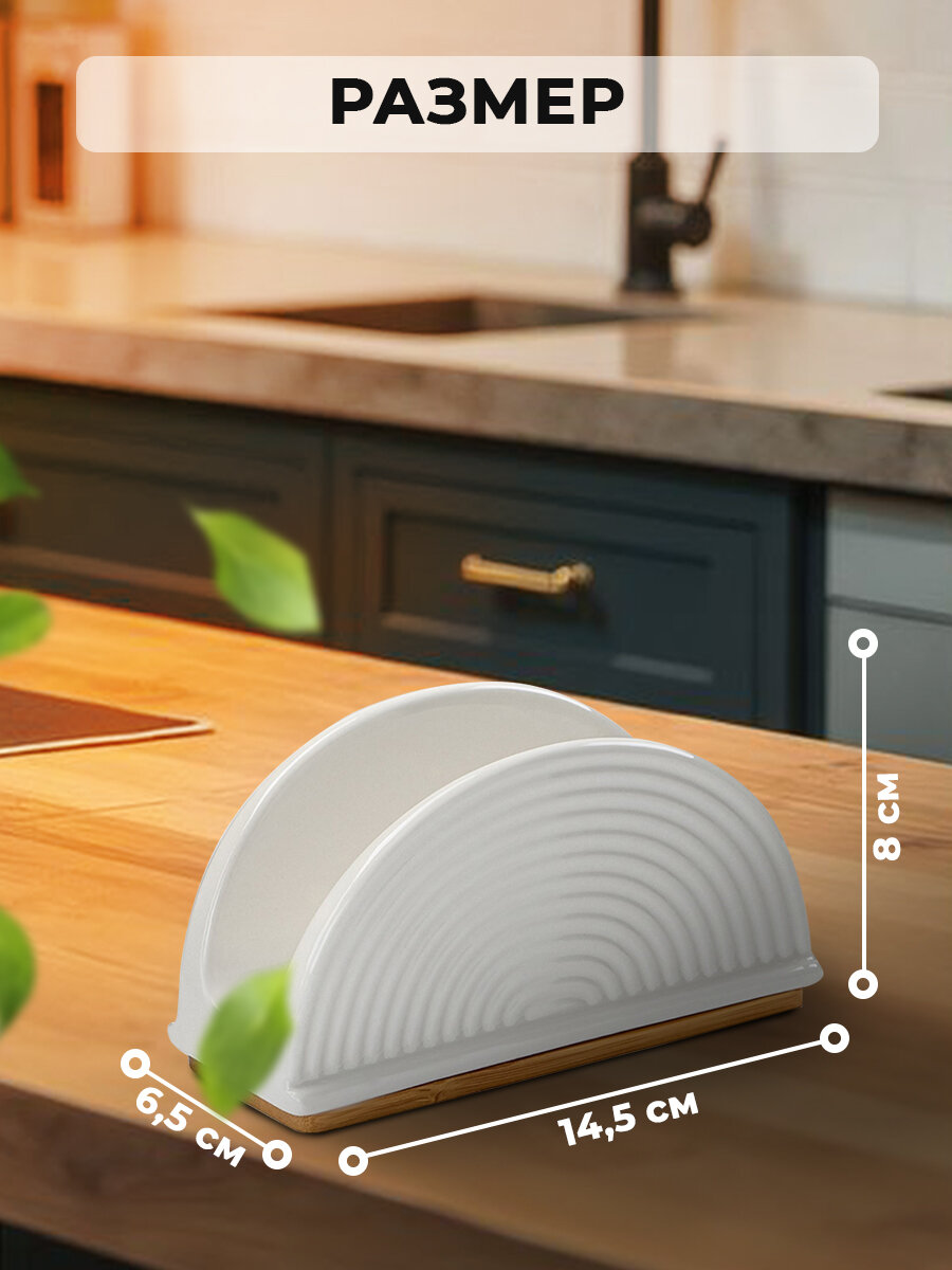 Салфетница фарфоровая на деревянной подставке BellaTenero, цвет белый информация: