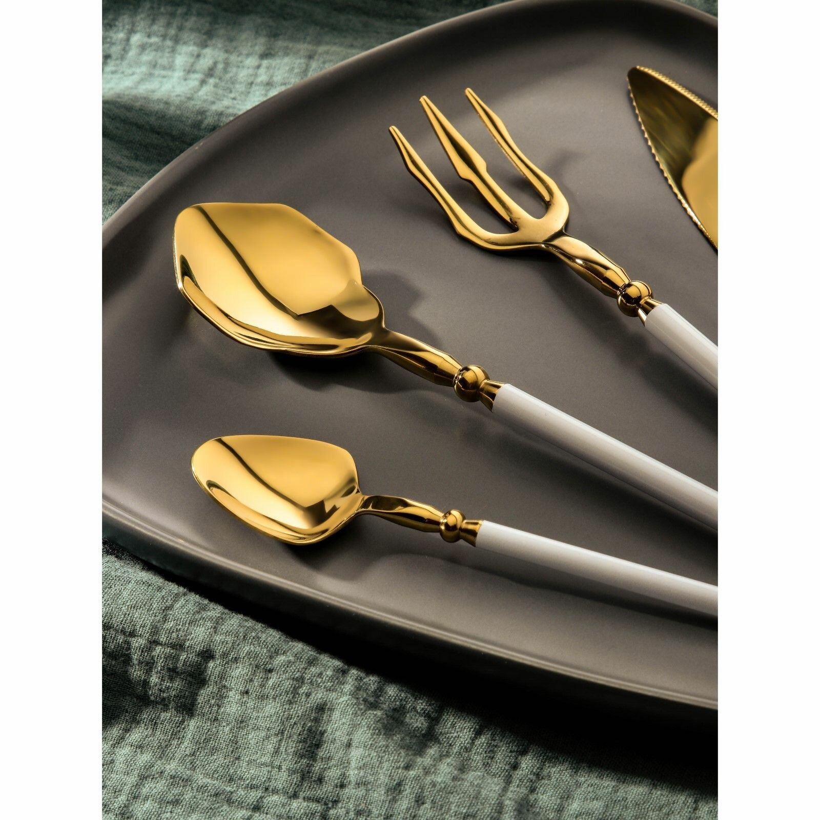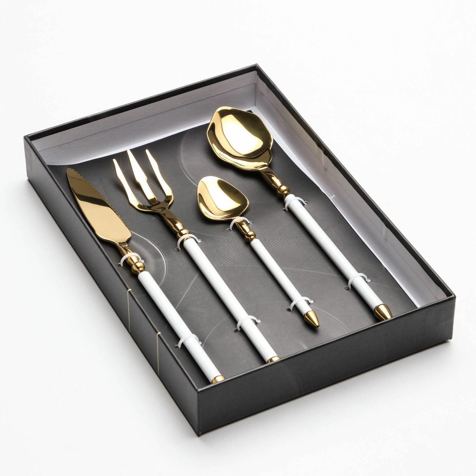 Отзывы на Столовые приборы из нержавеющей стали Magistro Ocean, 4 предмета, цвет металла золотой, ручка белая