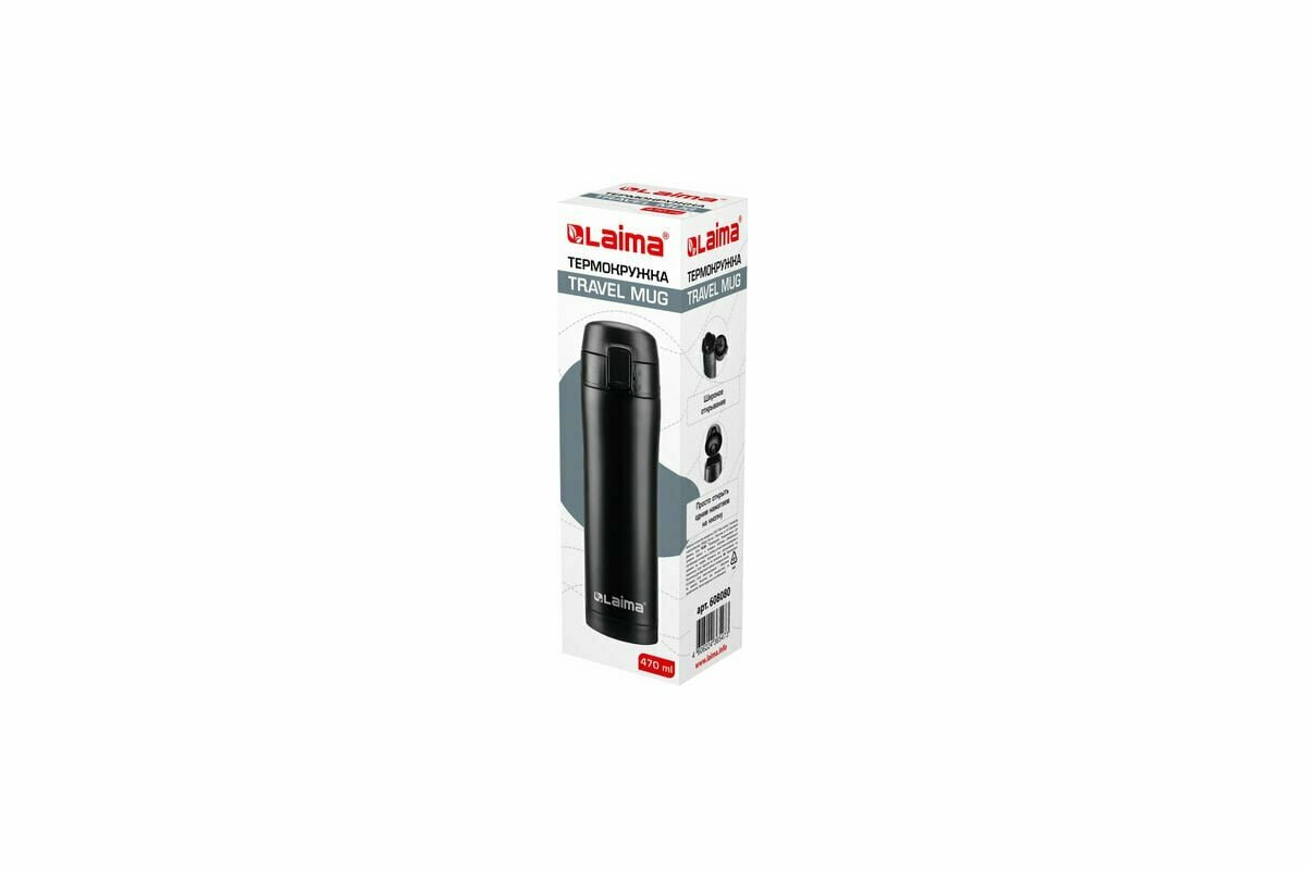 Комплект 5 шт, Термокружка с двойной стенкой из нержавеющей стали, 470 мл, цвет безграничный черный, LAIMA, 608080 4 760 ₽