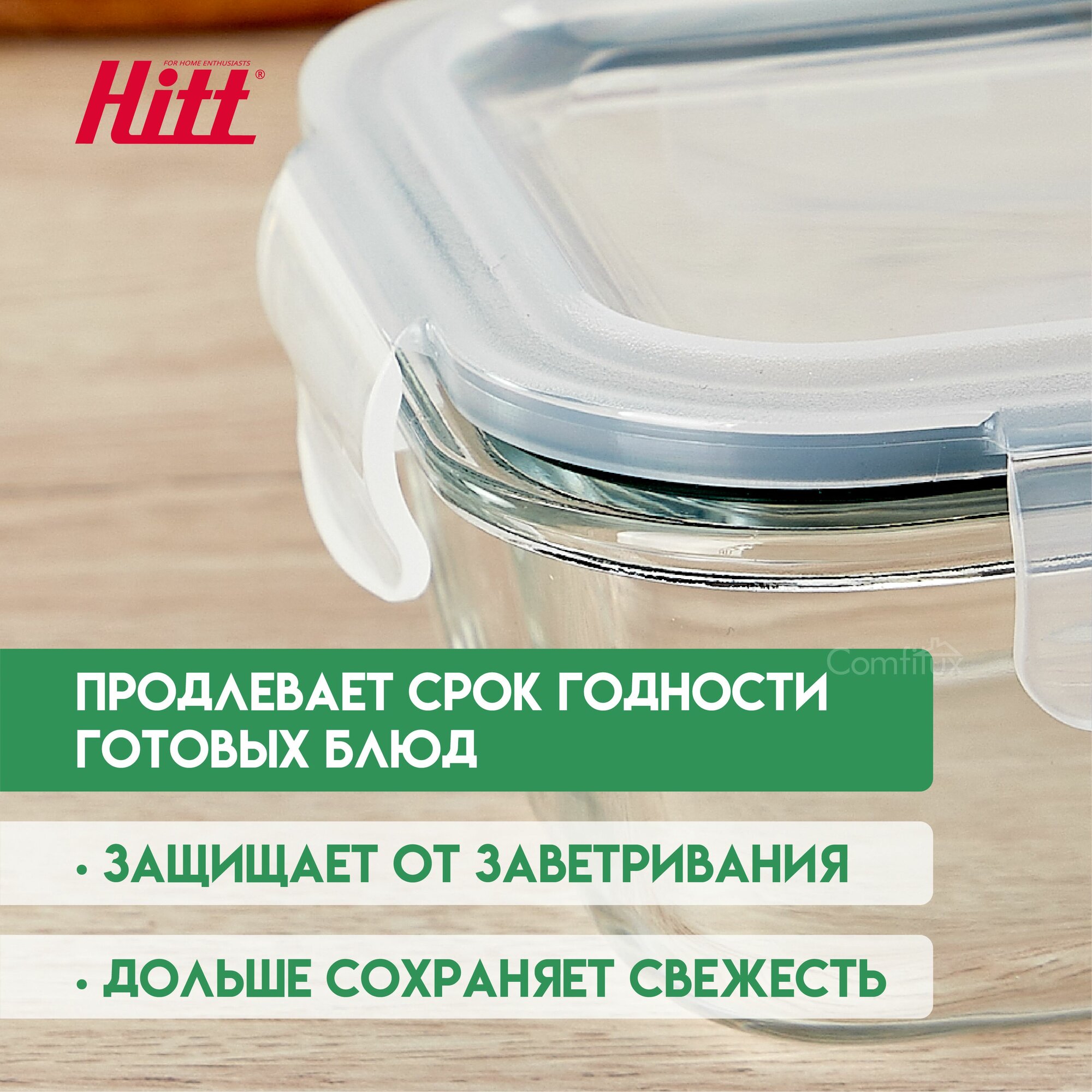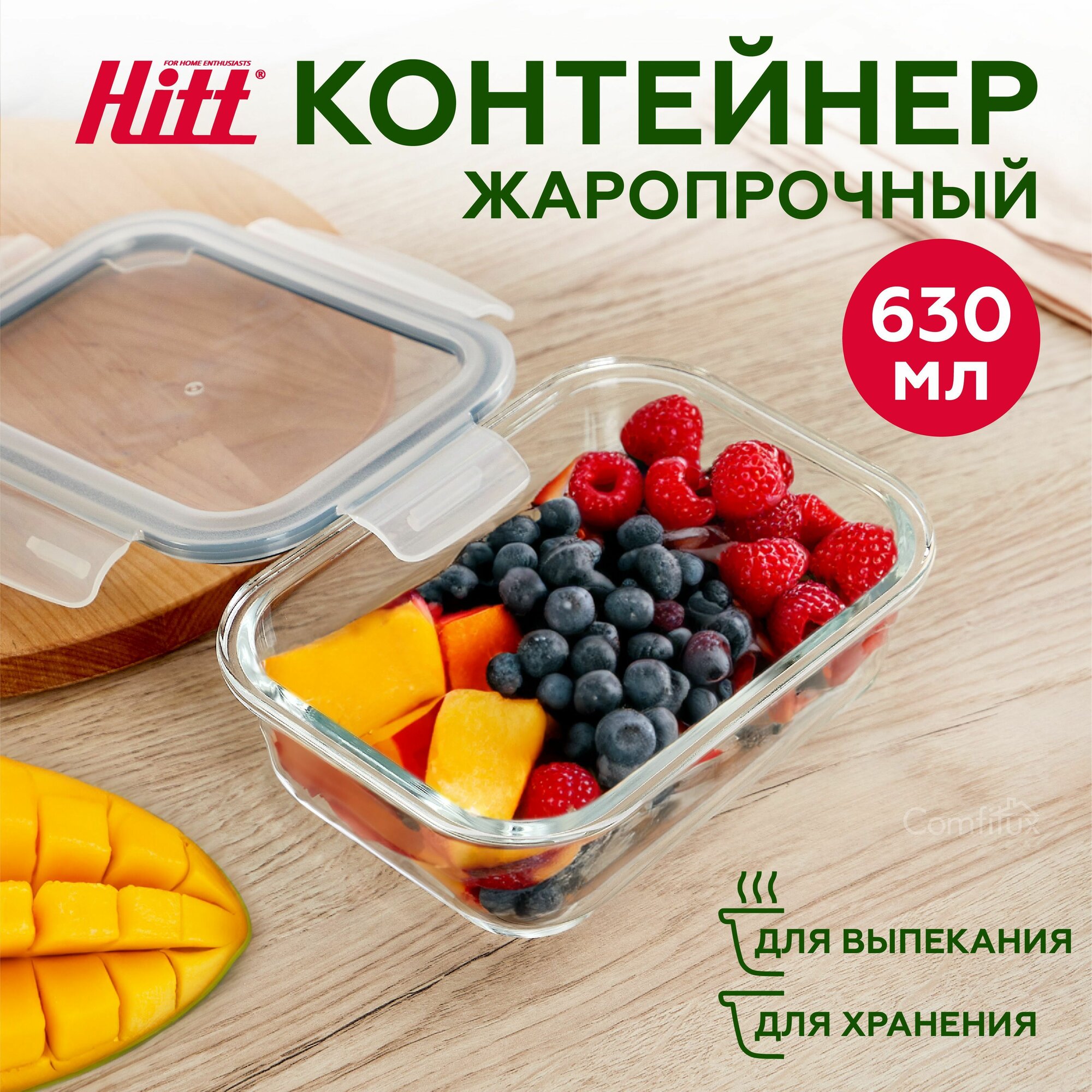 Контейнер для хранения продуктов 630 мл Hitt, герметичный, стеклянный, подходит для запекания информация: