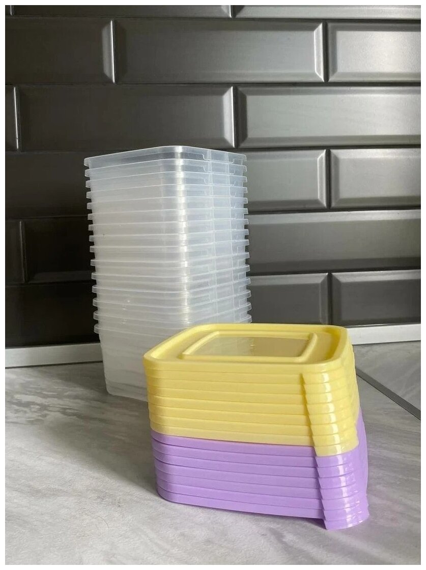 Отзывы на Набор пластиковых контейнеров для хранения и заморозки, Ангора, 0,7 и 1 литр, 15 штук, кремовый + сиреневый