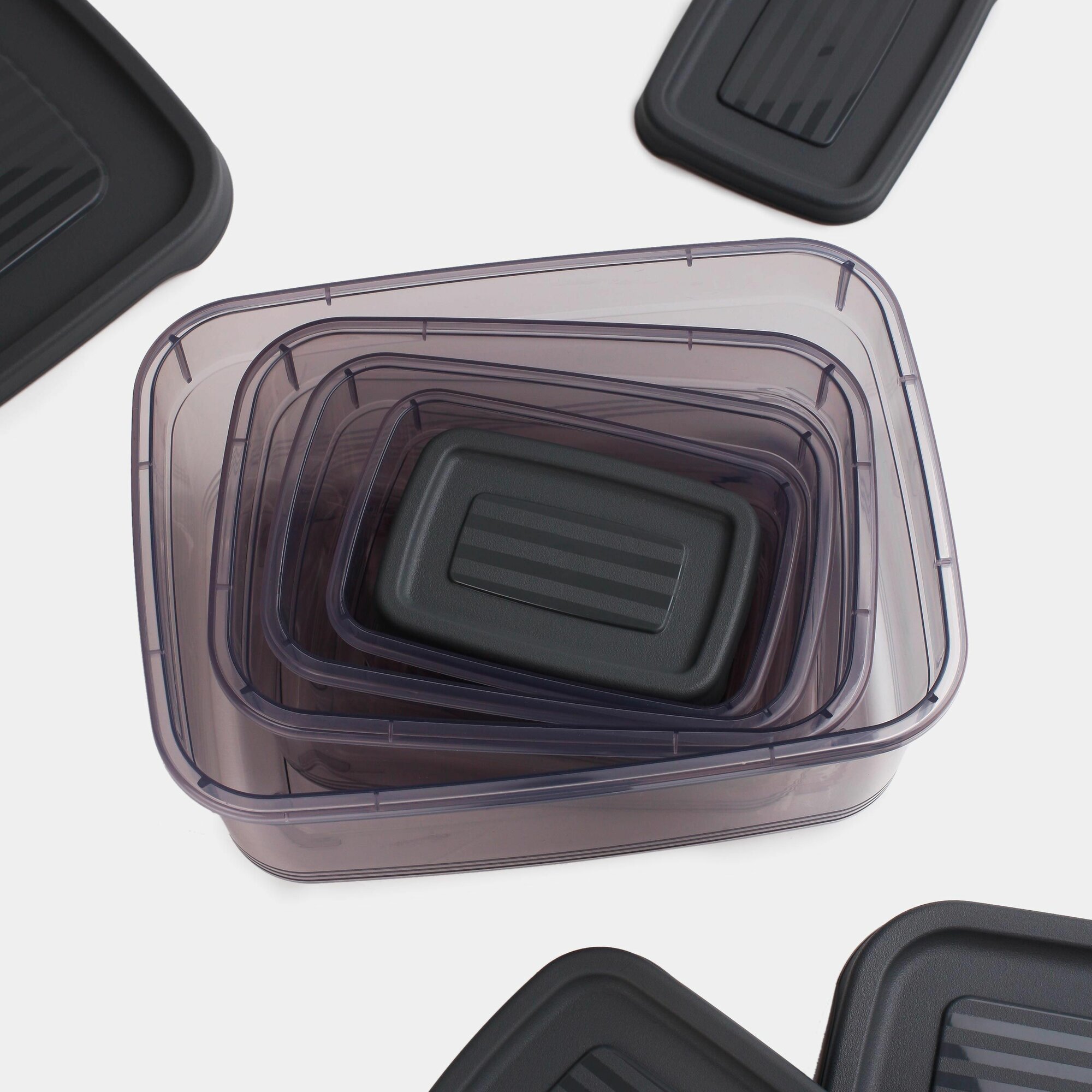 10 цен на Набор контейнеров, 5 шт, пластик, прямоугольный, графитовый, Solidity