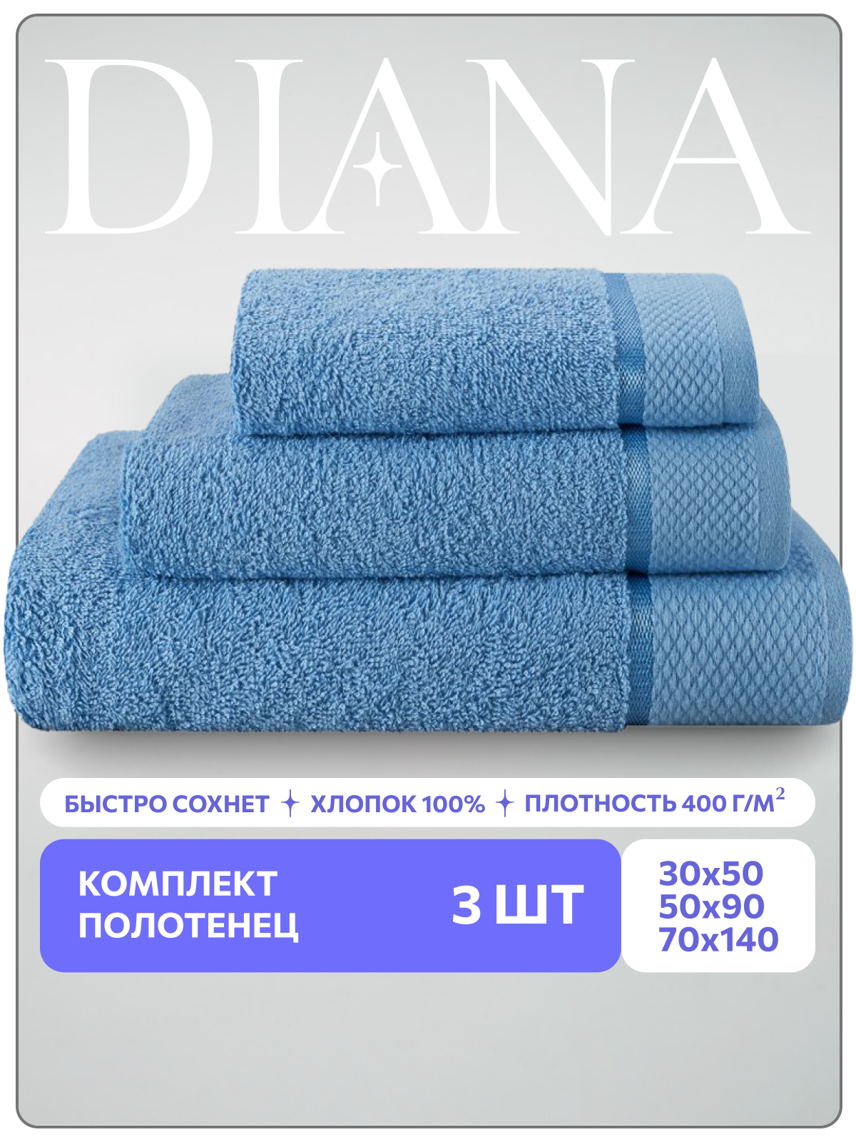 Набор полотенец махровых (30х50 см, 50х90 см, 70х140 см), Diana, цвет: Темно-голубой 767 ₽