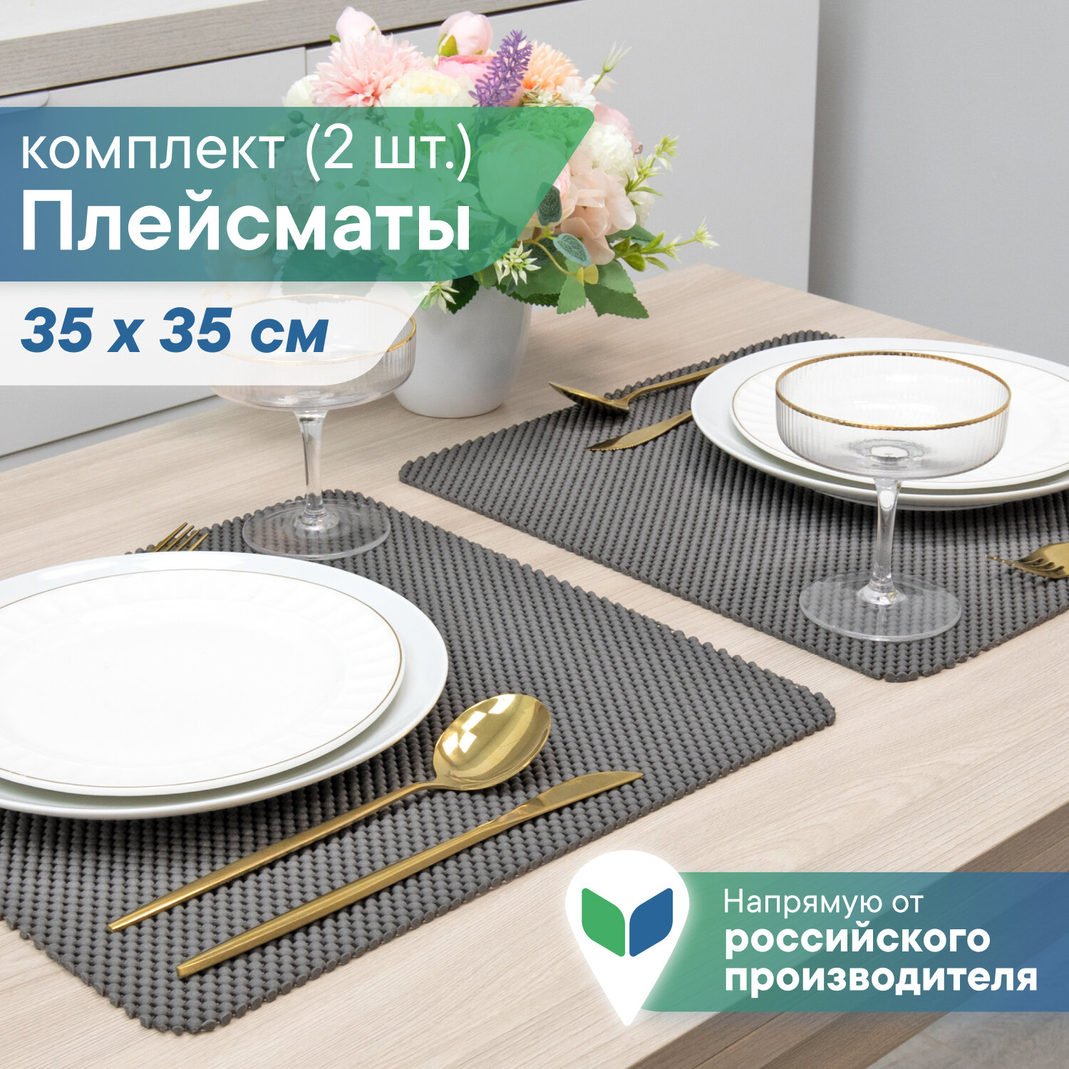 10 цен на Салфетки сервировочные на стол/ плейсматы VILINA/ плейсмат для сервировки 2 шт 35х35 см из вспененного ПВХ графитовый