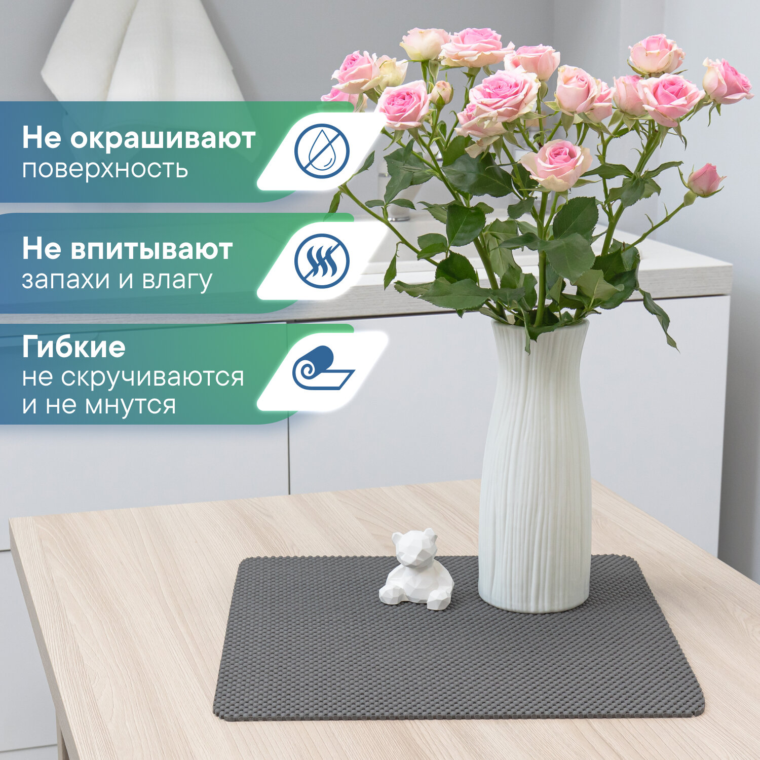 Салфетки сервировочные на стол/ плейсматы VILINA/ плейсмат для сервировки 2 шт 35х35 см из вспененного ПВХ серый 390 ₽