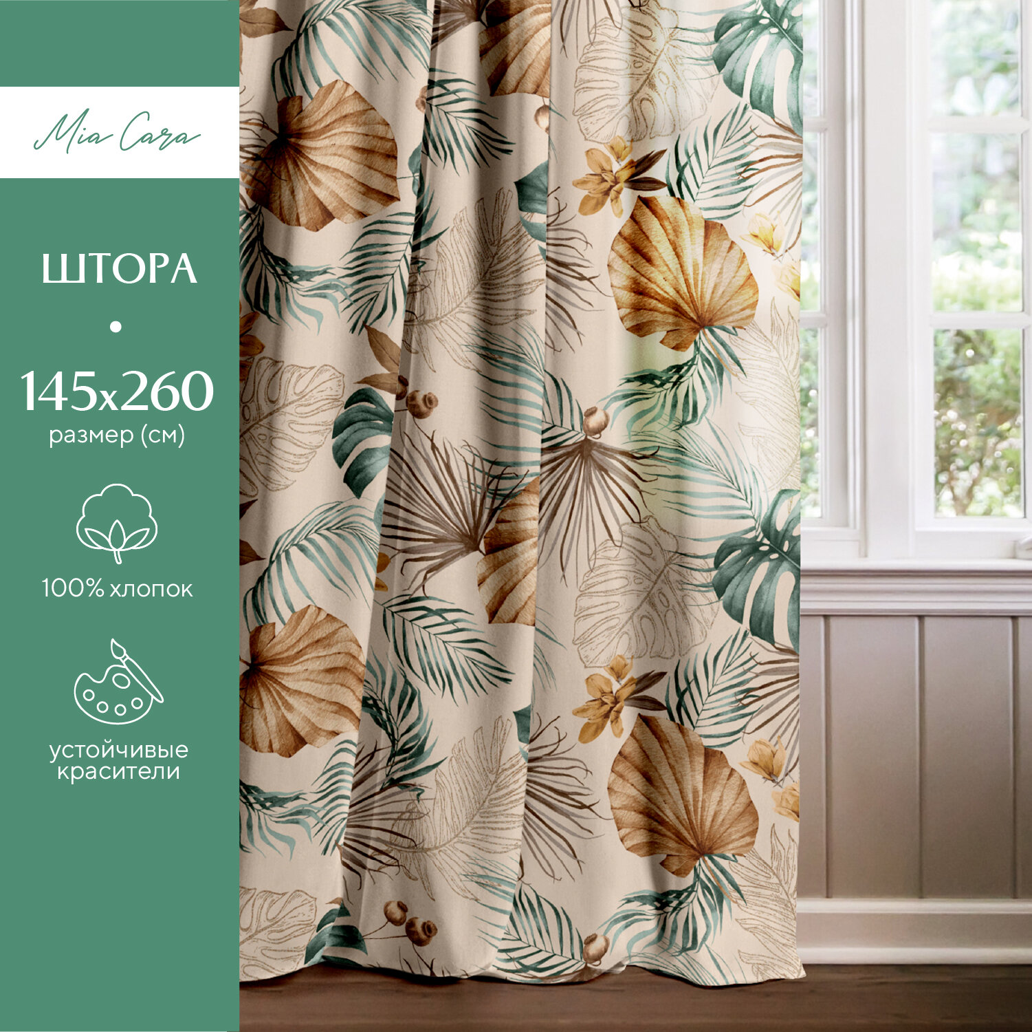 Штора рогожка 145х260 "Mia Cara" рис 30662-2 Tropical palm информация: