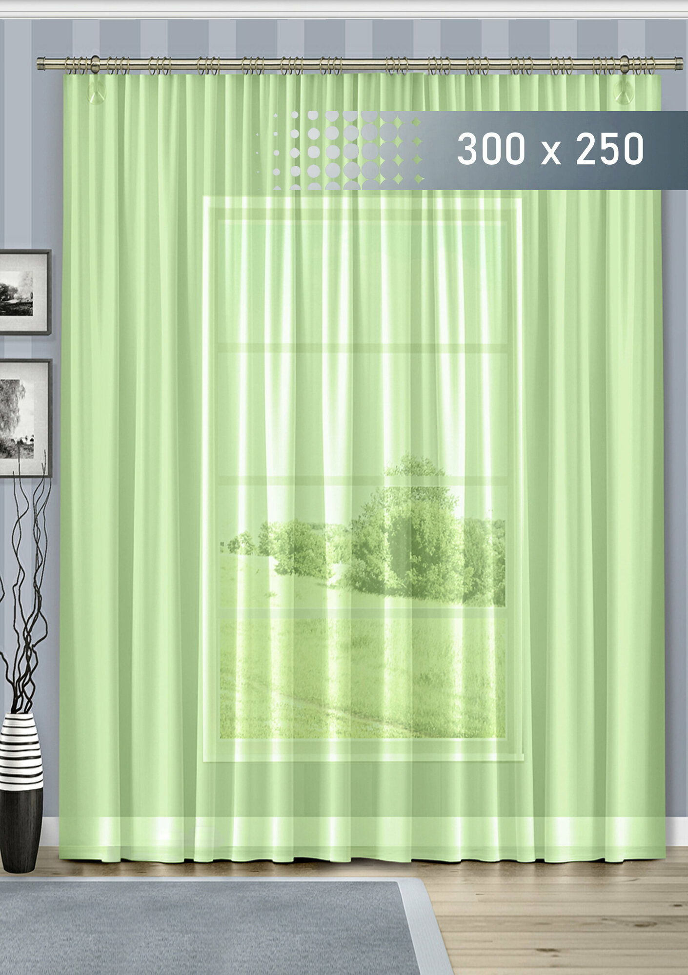 Тюль в спальне, вуаль, 300×250, салатовый, полупрозрачный, одно полотно информация: