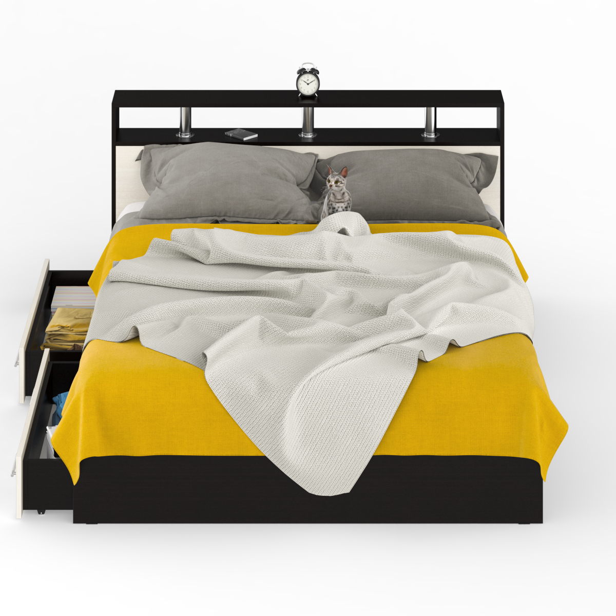 Кровать с ящиками СВК Камелия 1600 Венге/Дуб Лоредо Размеры: Высота 782мм Глубина 2170мм Ширина 1666мм