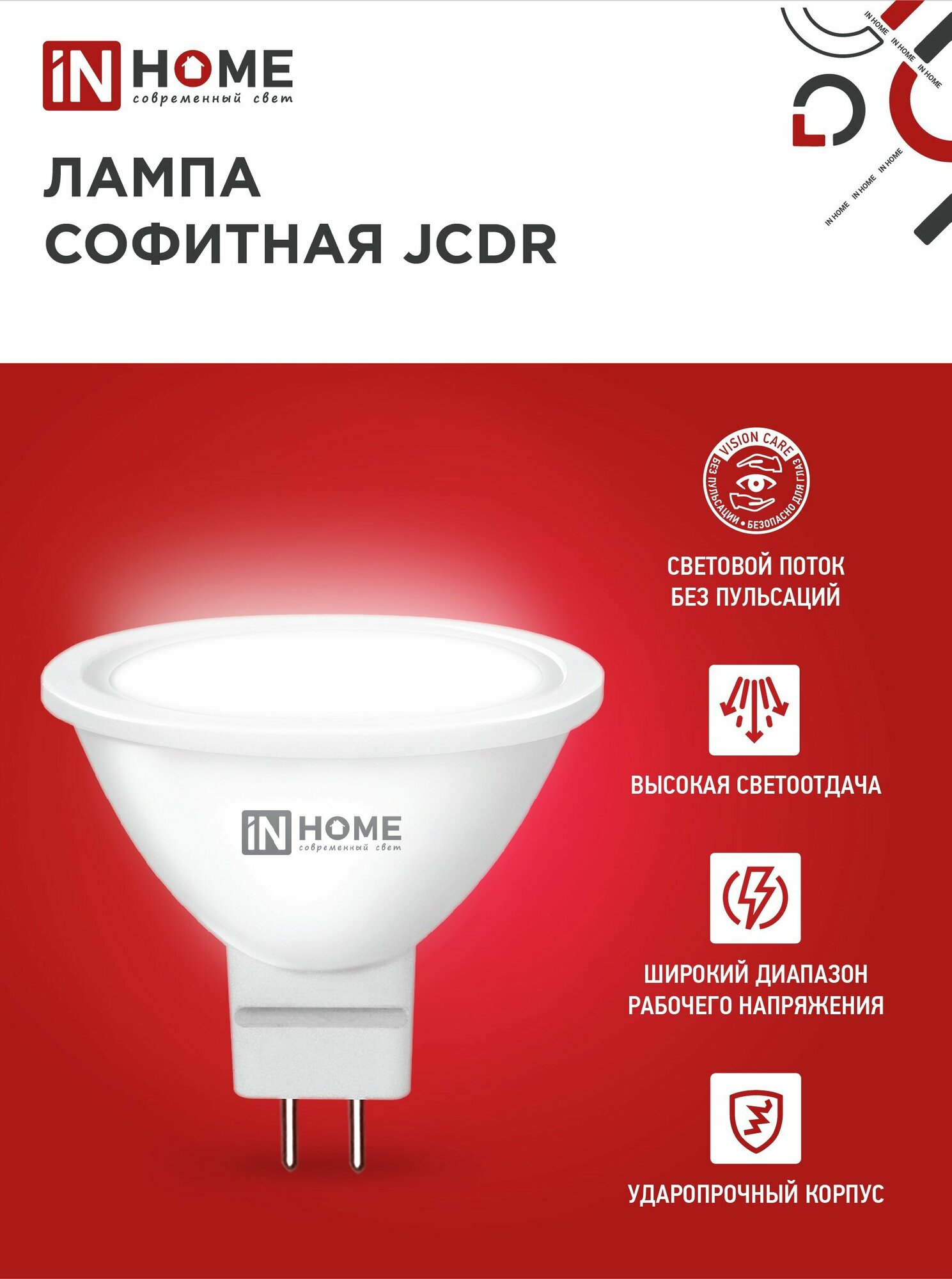 Лампа светодиодная GU5.3, набор 10 шт, теплый свет 3000К, 720 Лм / 8 Вт, 230 В, IN HOME LED-JCDR-VC 932 ₽