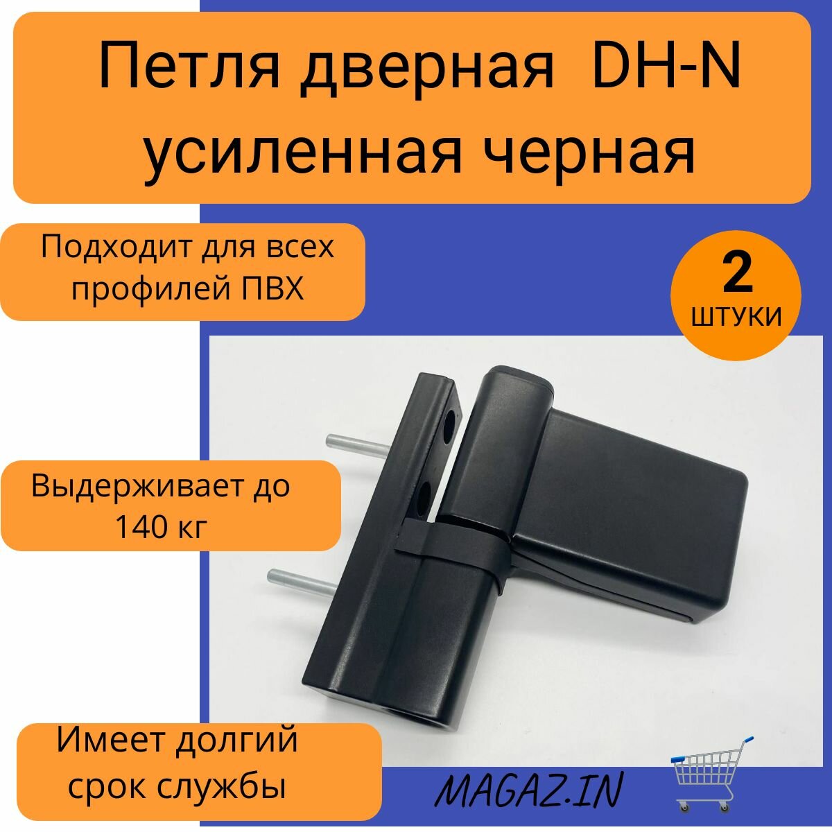 Петля дверная DH-N для дверей ПВХ до 140 кг, цвет черный, 2 штуки информация: