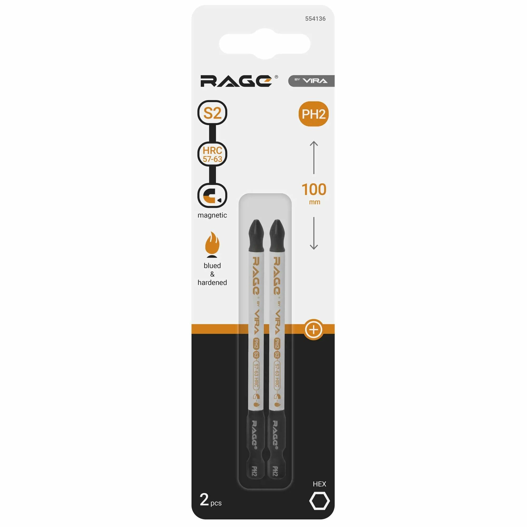 | Ручной инструмент подробно | Биты магнитные S2 PH2x100мм 2 шт. RAGE by VIRA |