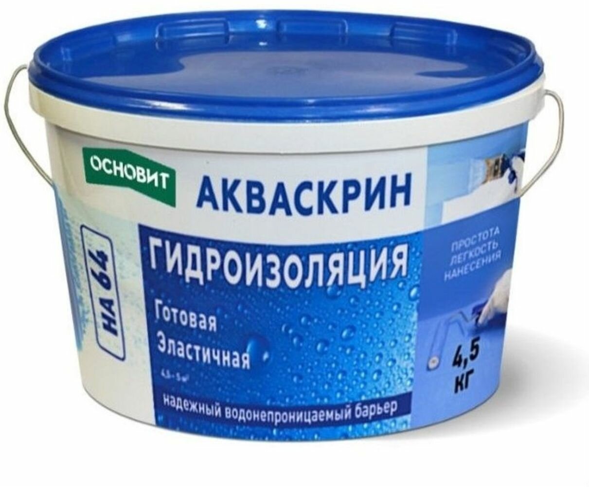 Готовая эластичная гидроизоляция основит Акваскрин HA64 4,5 кг информация: