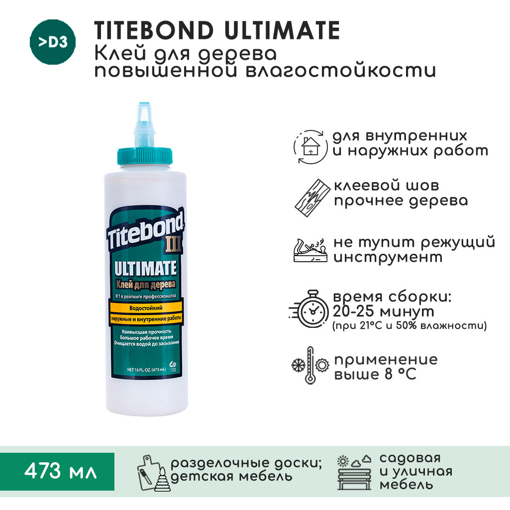Столярный ПВА клей Titebond III Ultimate повышенной влагостойкости, 473 мл информация: