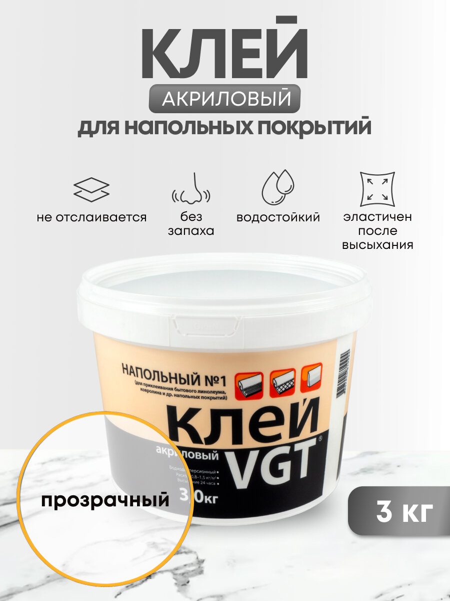 Клей универсальный VGT Акриловый Напольный №1 Эконом, 3 кг информация: