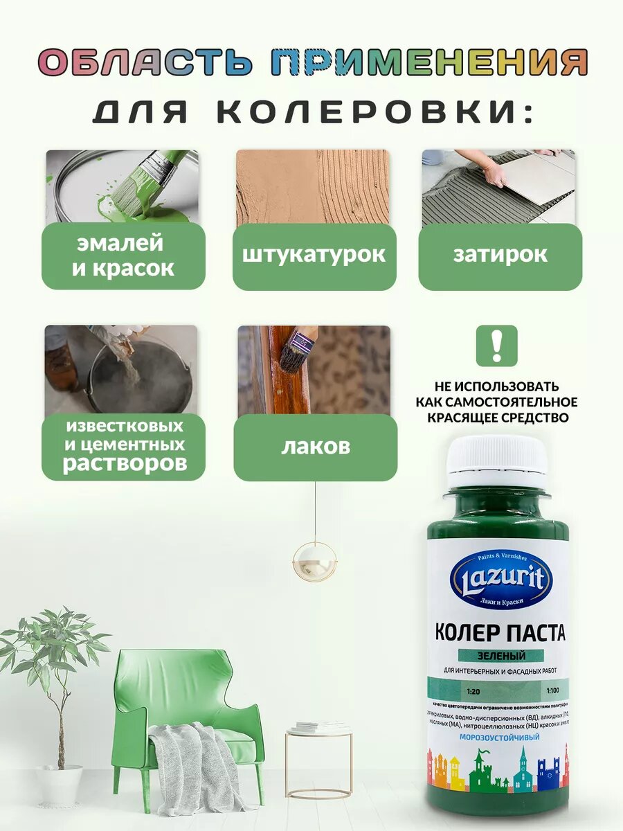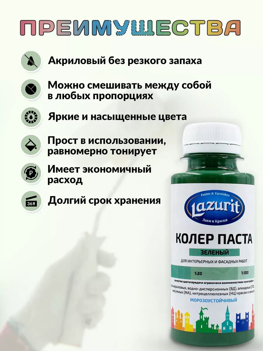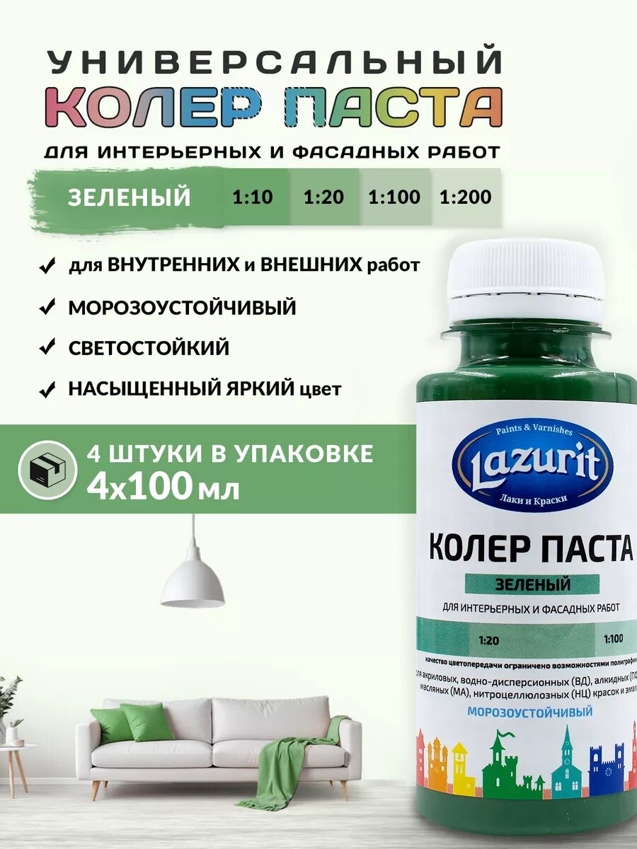 Колер-паста LAZURIT зеленое яблоко 100 мл/4шт информация: