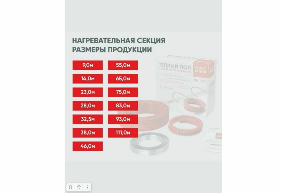 Теплый пол Квадрат Тепла 83 м-1500 Вт кабельный с терморегулятором 7 068 ₽
