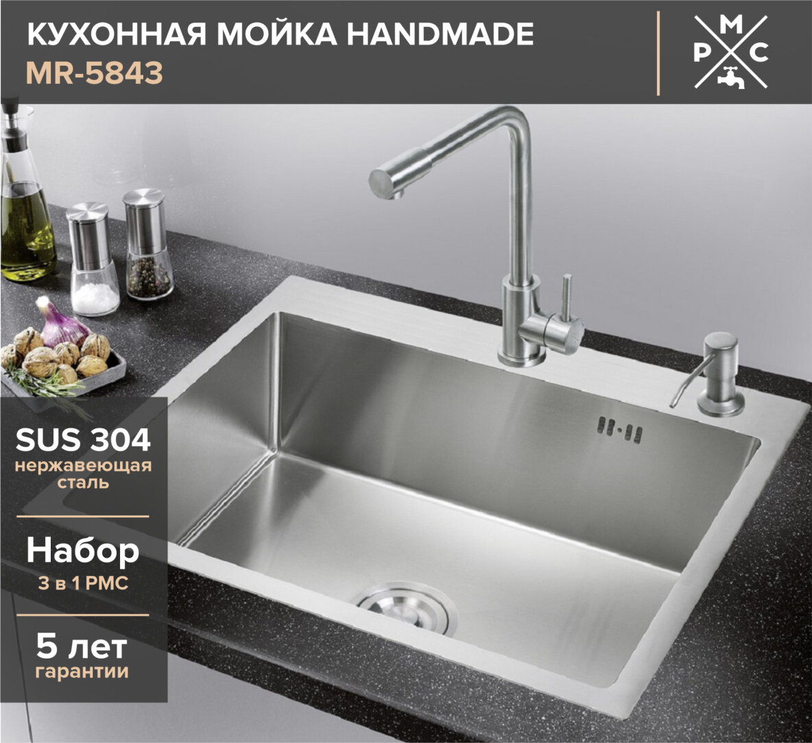 10 цен на Кухонная мойка из нержавеющей стали, РМС MR-5843, дозатор, корзина раздвижная для сушки, сифон