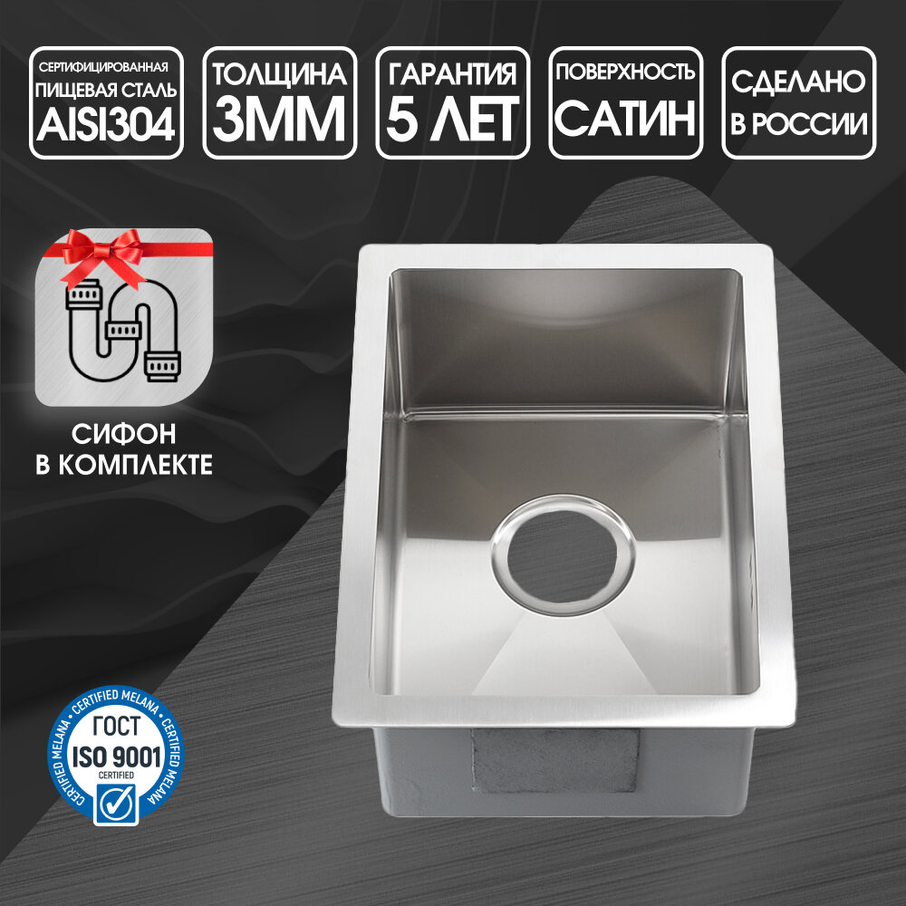 Мойка R5040H MELANA ProfLine 3,0/200 сатин врезная квадратная R5040H