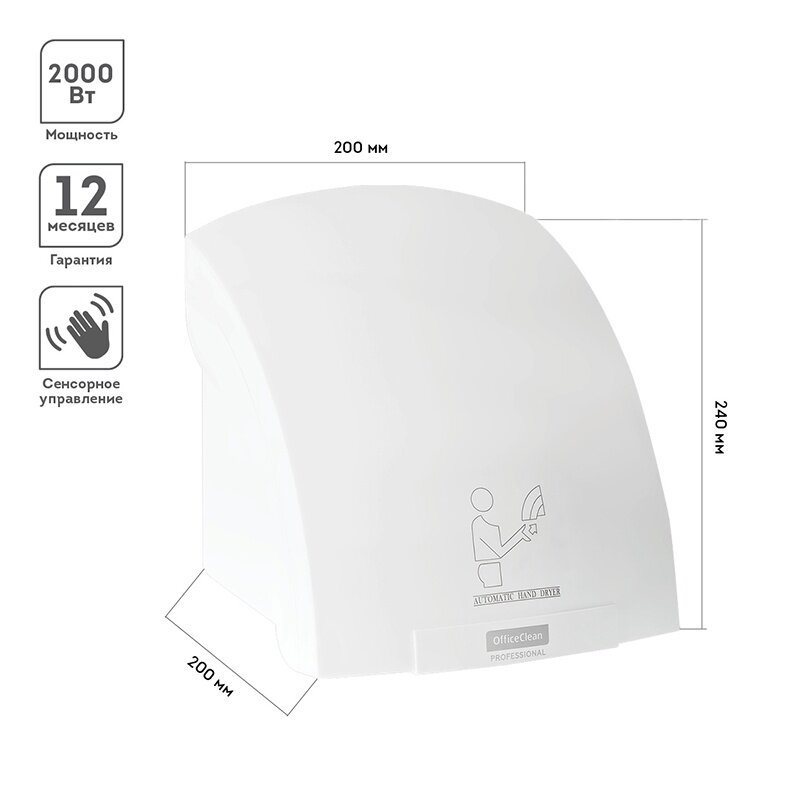 Сушилка для рук OfficeClean Professional, 2000 Вт, сенсорная, белая, ABS-пластик (314587) информация: