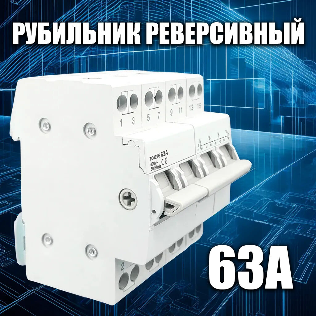 Трехпозиционный переключатель, 4p, 63А, 4 полюса, модульный перекидной, рубильник реверсивный, 2 источника питания, на din-рейку 1 373 ₽