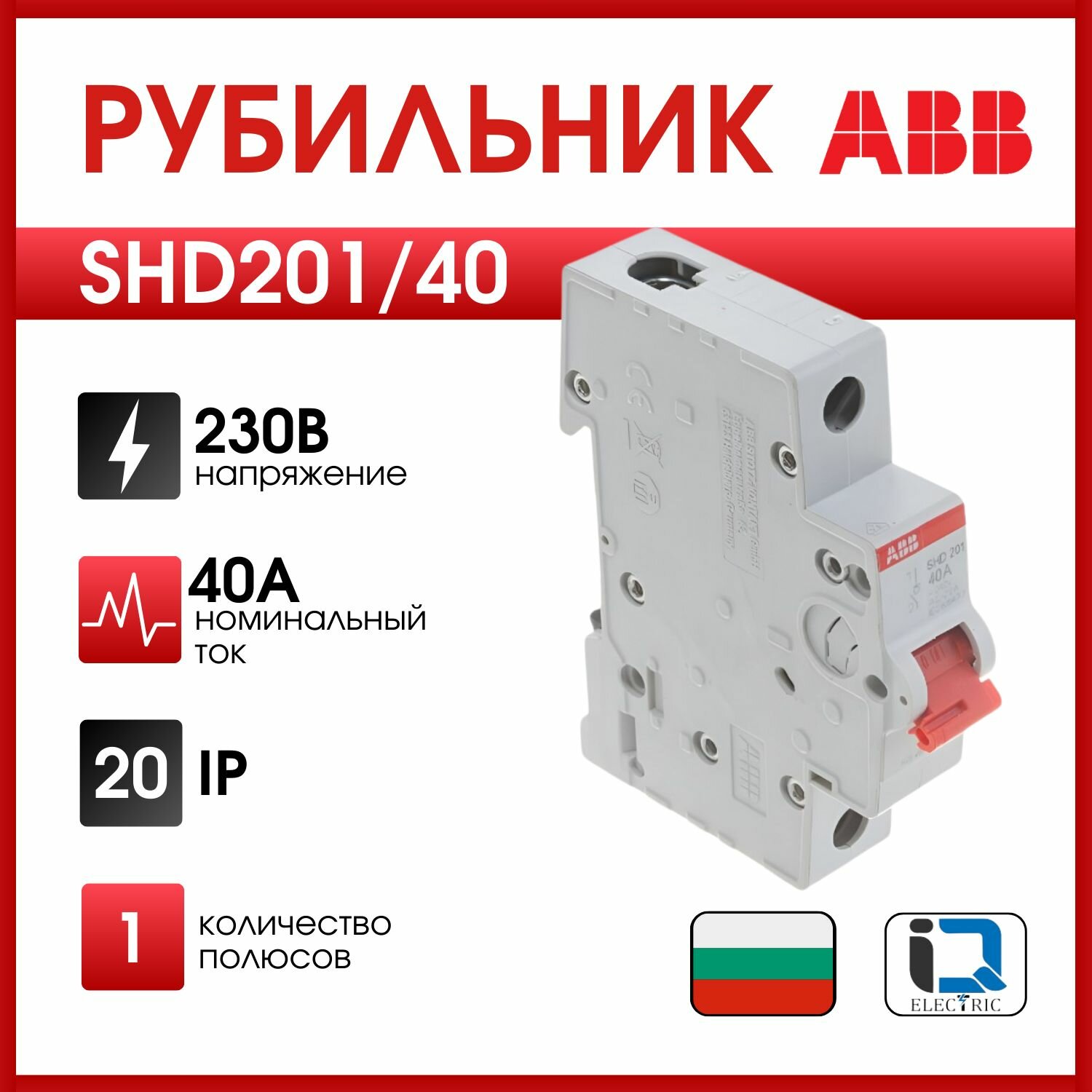 ABB Рубильник 1-пол. SHD201/40 рычаг красный 2CDD271111R0040 информация: