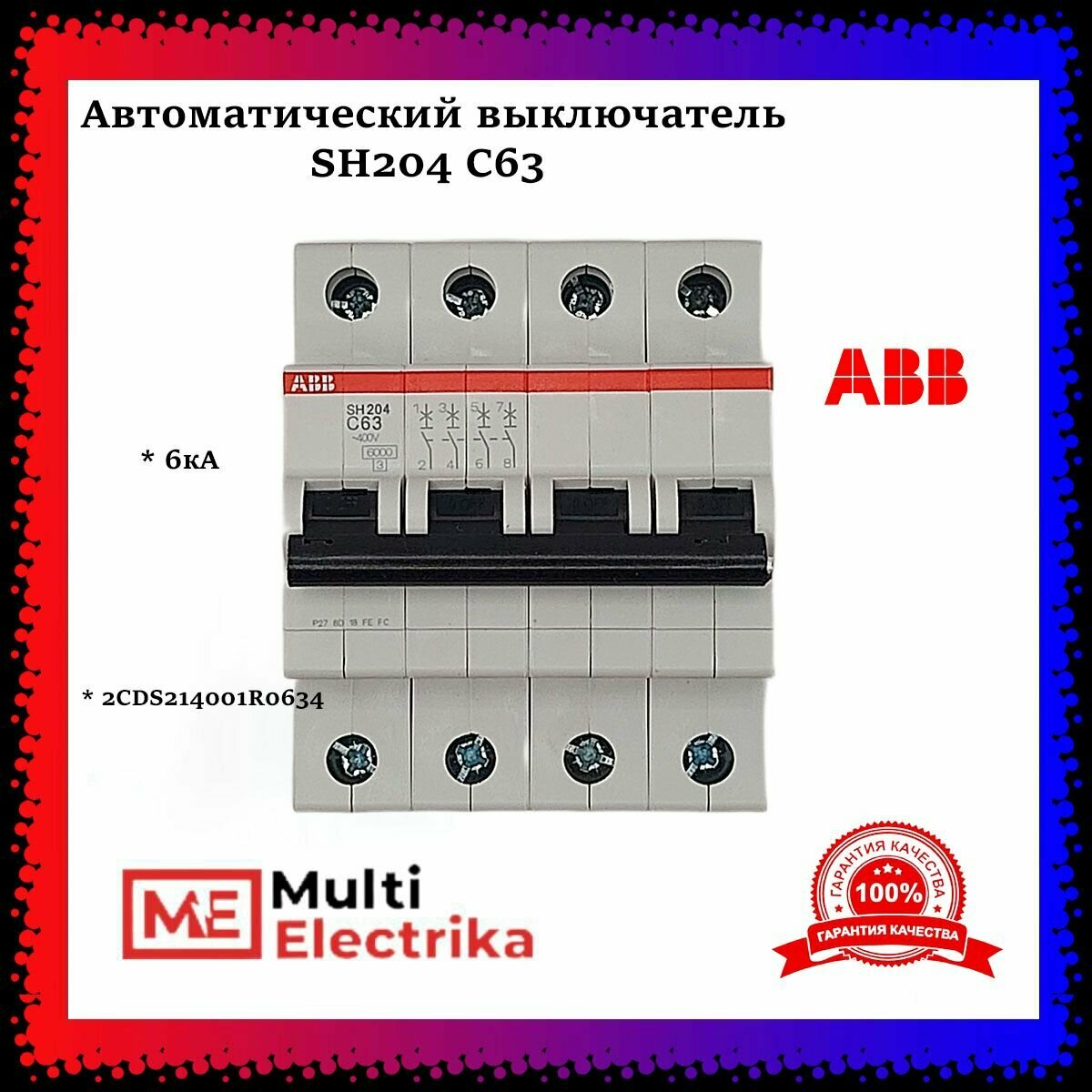 SH204 C63 Автоматический выключатель 4-полюсный, 63А, 6kA (хар-ка C) ABB, 2CDS214001R0634 информация: