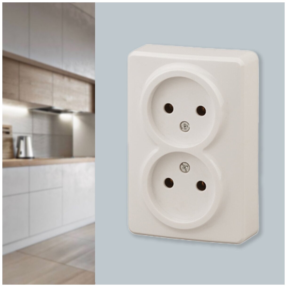 Розетка силовая штепсельная ЭРА 12-2107-02, 16А 250В IP20 слоновая кость, 2х2P без заземления, двухместная, Б0031239 / электрооборудование 549 ₽