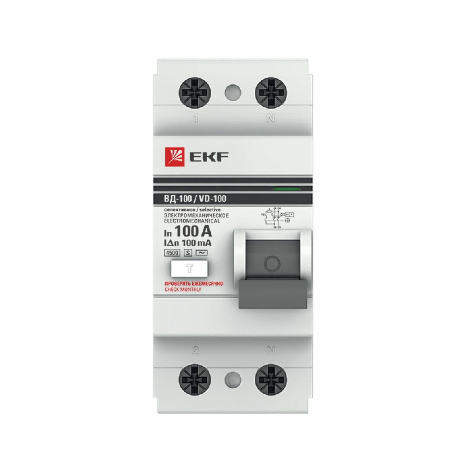 УЗО EKF PROxima ВД-100 100А 100 мА 2P тип АС 4,5 кА селективное (elcb-2-100-100S-em-pro)