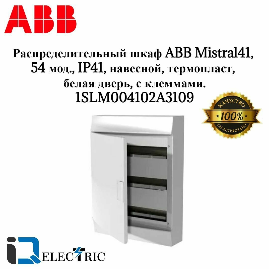 Распределительный шкаф ABB Mistral41 54 мод, IP41, встраиваемый, термопласт, белая дверь, с клеммами 1SLM004101A1109 16 247 ₽