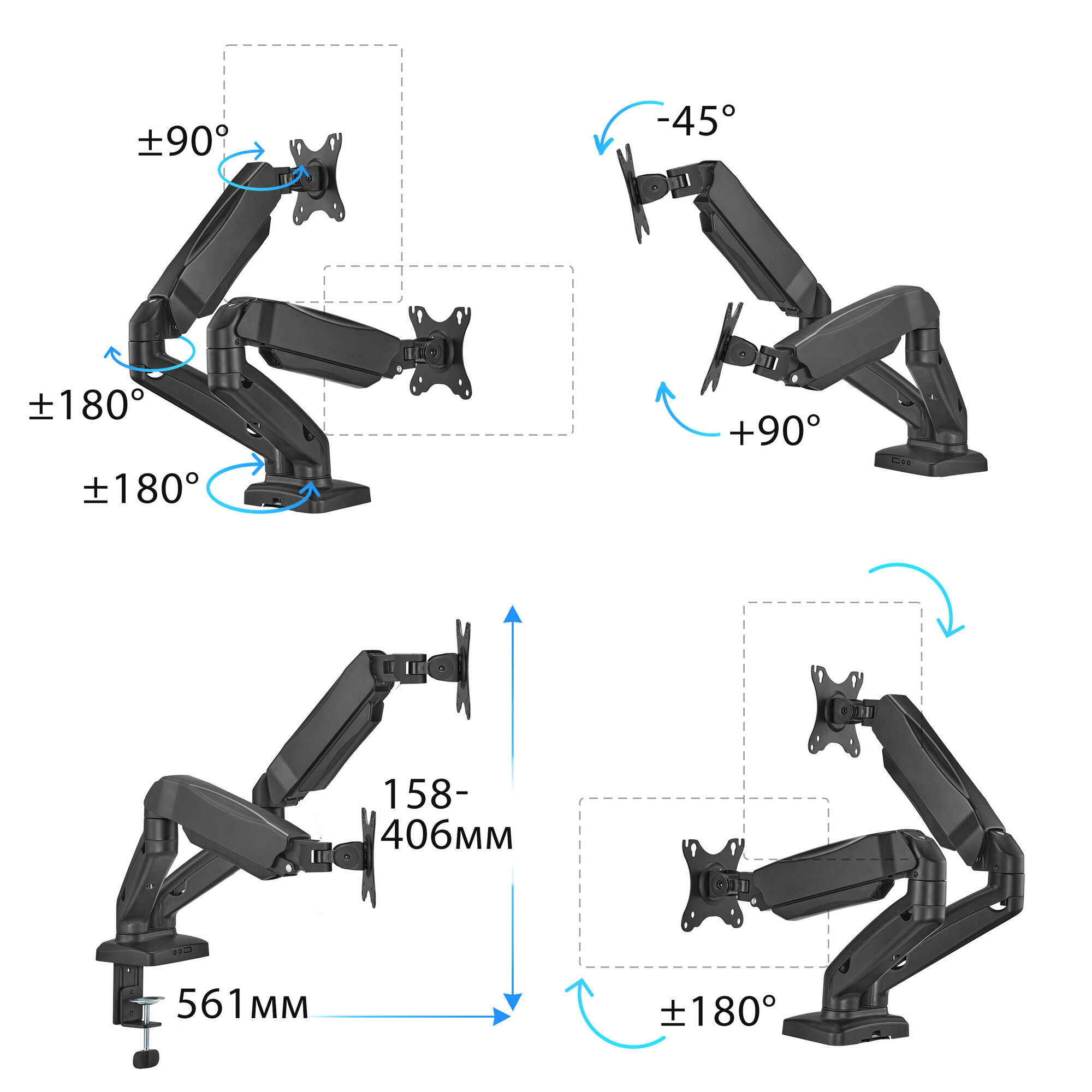 Настольный кронштейн для двух мониторов NB North Bayou G35, 22-32" до 12 кг, матовый черный