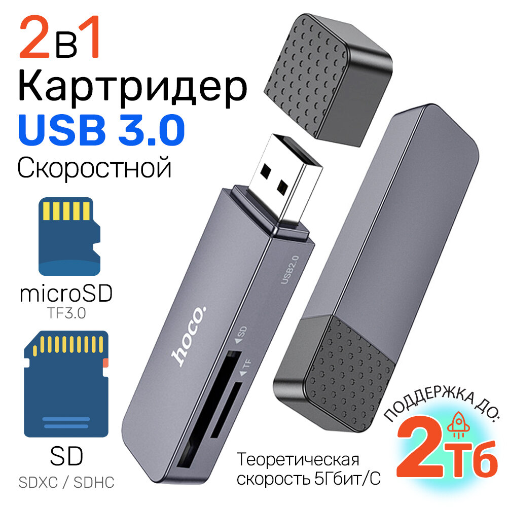 Картридер Hoco HB45 Spirit 2-в-1 USB 3.0 для SD и MicroSD / TF карт, серый информация:
