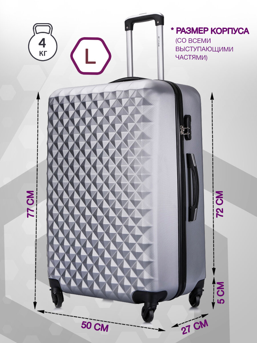 Чемодан на колесах M средний, серый - Чемодан ABS - пластик, семейный Lcase
