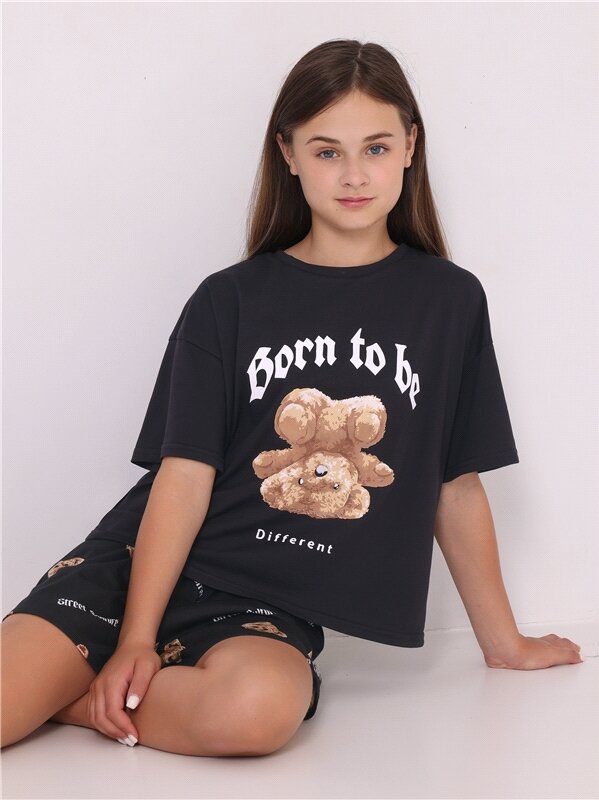 Пижама для девочки с шортами костюм домашний хлопок 100% Апрель Апрель2ДЖФШ5745001н/ черный,коричневый 164-88 информация: