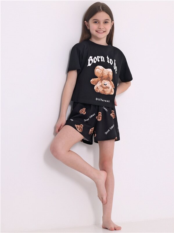 Пижама для девочки с шортами хлопок 100% Апрель 2ДЖФШ5741001н/678/*/5258/3394/*/*/* черный, коричневый 76-146