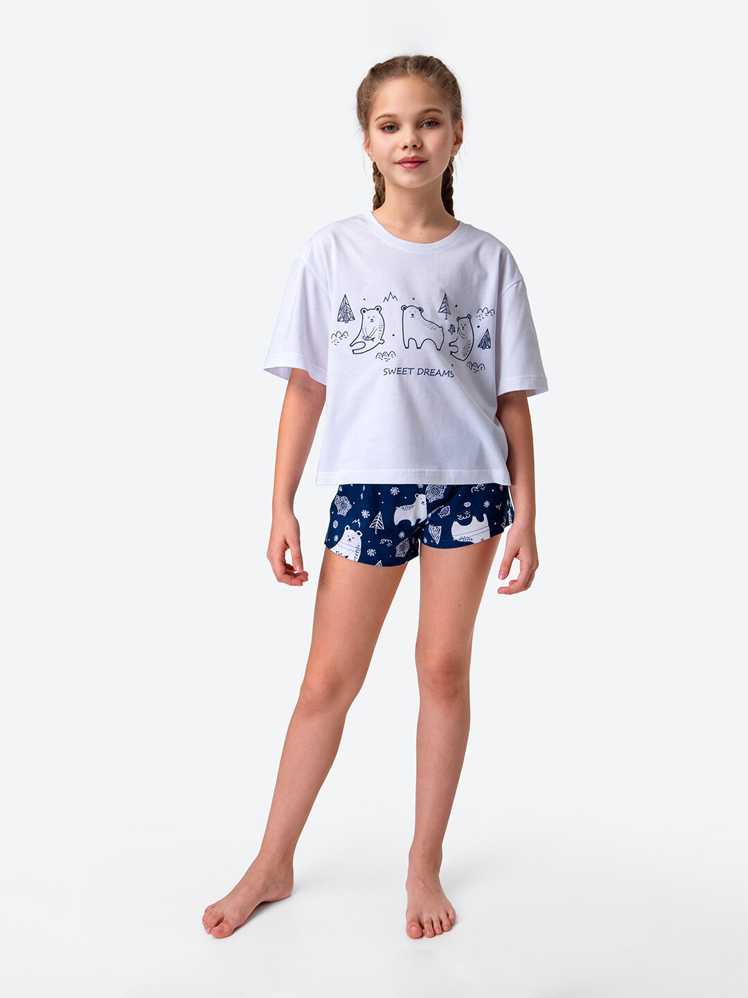 Пижама для девочки подростка хлопковая HF5900DSP белый.медведи.елки.на.чернильном 158 1 415 ₽