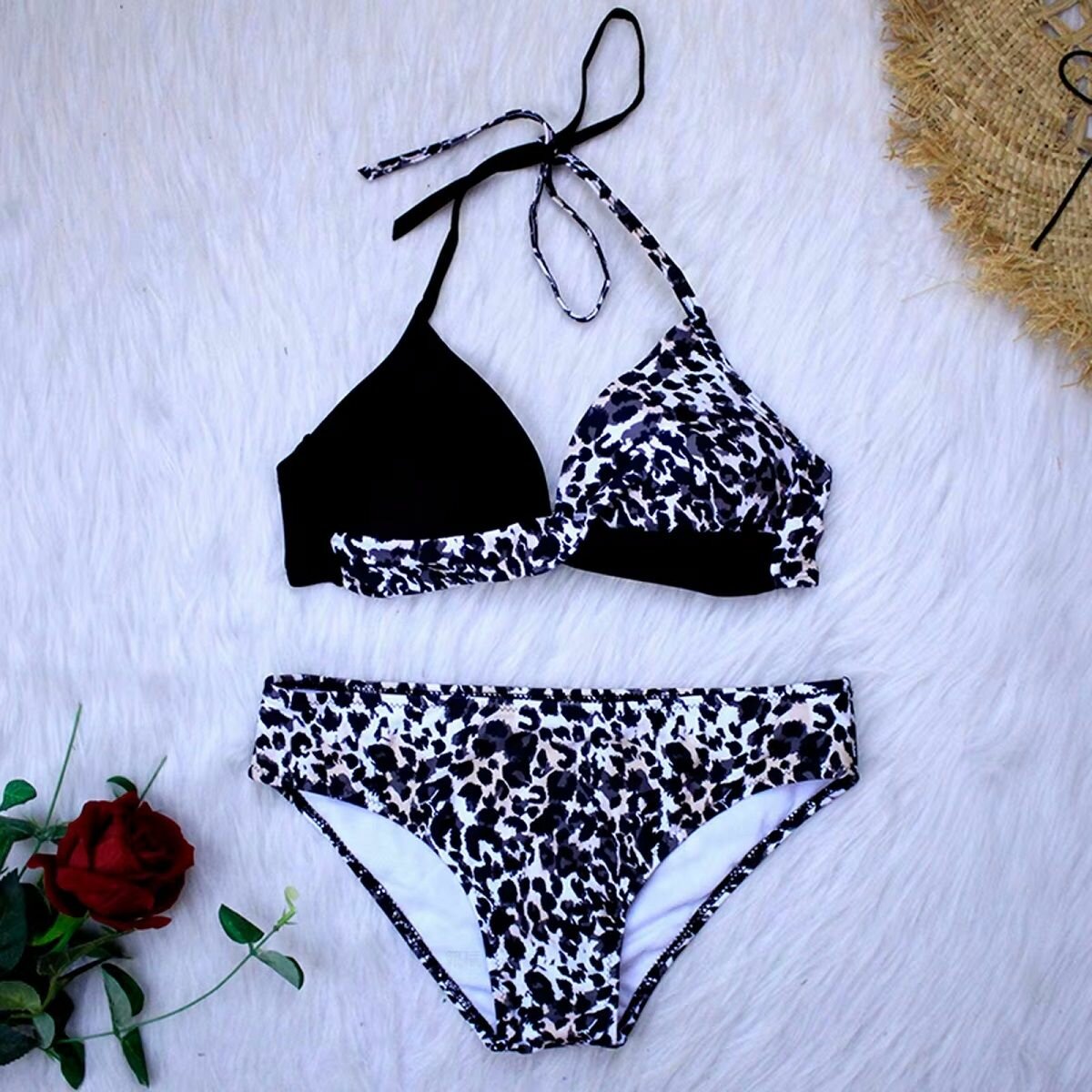 10 цен на Черный раздельный купальник с анималистическим принтом