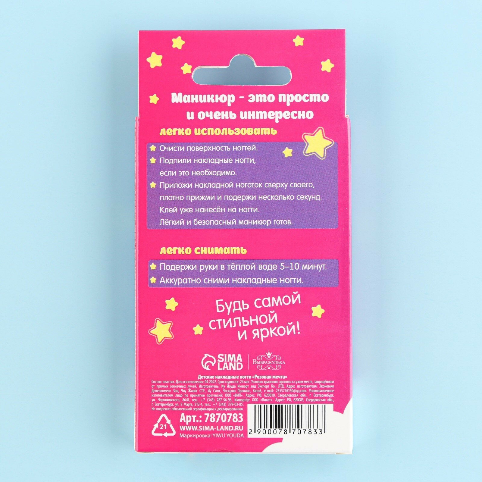 Детские накладные ногти "Розовая мечта" , 12 шт 7870783 информация:
