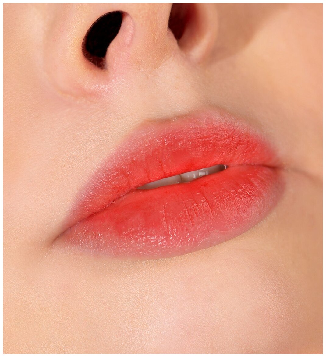 | Дополнительная информация | Тинт для губ на легкой водно-гелевой основе и повышенной концентрацией пигментов придает губам естественный оттенок и матовый финиш, усиливает выразительность и яркость природного цвета губ. Спустя несколько секунд после нанесения жидкая текстура высыхает и впитывается в кожу губ, превращаясь в невесомое полупрозрачное покрытие с эффектом "макияж без макияжа". Благодаря удобному аппликатору оттеночный гель-тинт для губ легко наносится и равномерно распределяется, не растекается за контур. |
